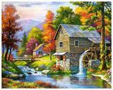 Алмазная вышивка «Начало осени в лесу и мельница на реке» 40x50 см