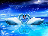 «Пара лебедей на озере под полной луной»